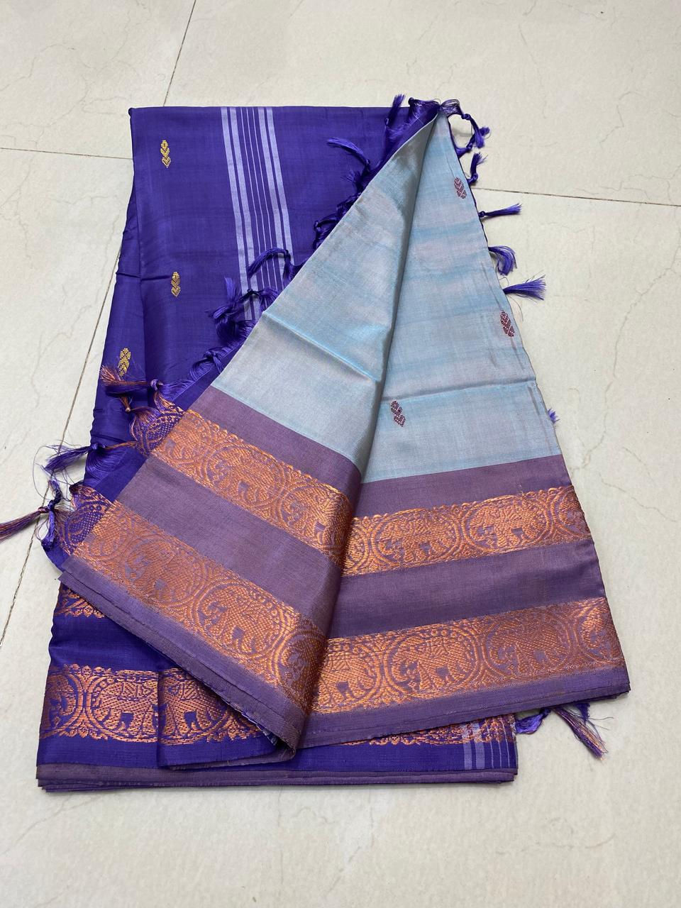 What are Kalyani Cotton 9 Yards Sarees? Kalyani Cotton fabric is a blend of acrylic and cotton fibers, combining the advantageous properties of both materials to create a versatile, durable, and comfortable fabric. These 9 Yards sarees are characterized by their colored body and a striking zari border. Known for their balanced texture—not too stiff nor too limp—a subtle silk-like sheen, they are favored for their resemblance to silk cotton sarees.