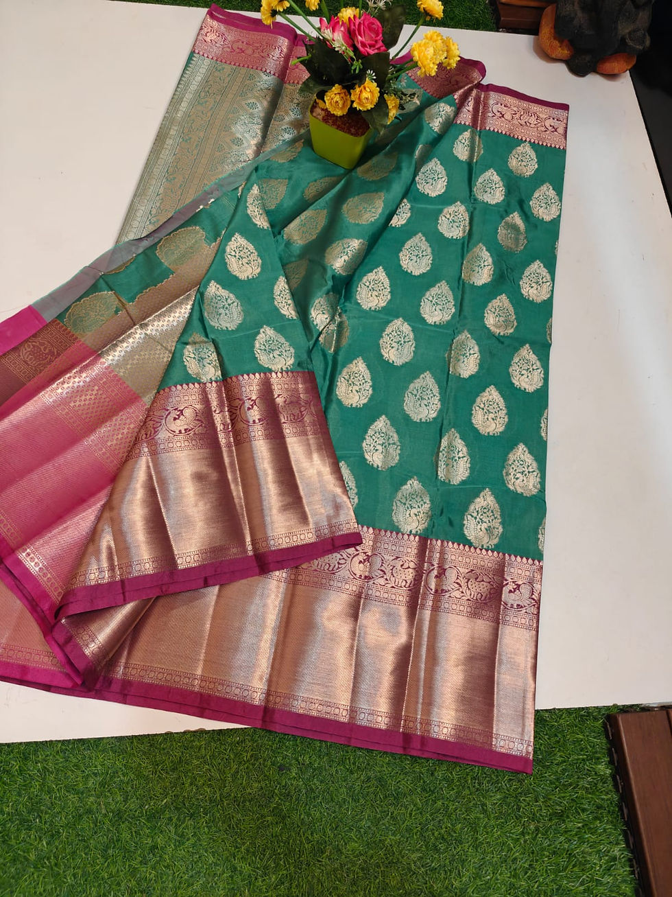Premium Kanjivaram Checks Silk Saree Ready to Wear, Saree For Weddings, with zari checks, grand zari border and pallu, and blouse with border